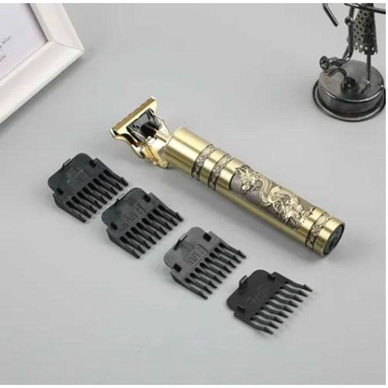 Conheça a máquina de corte detalhe barba dragão dourada o mais novo lançamento que está revolucionando a maneira que enxergamos corte de cabelo. É um incrível aparador de cabelo e barba, sem fio e recarregável, com uma bateria de que pode durar até 120 minutos de uso contínuo. Aparador externo profissional equipado com 3 pentes (1 mm, 2 mm, 3 mm) para cumprir exigências diferentes do comprimento. Você pode facilmente ajustar o pente para a altura certa e cortar o penteado que você deseja com extrema facilidade, pois é anatômica e antiaderente, garantindo total controle na hora do corte.