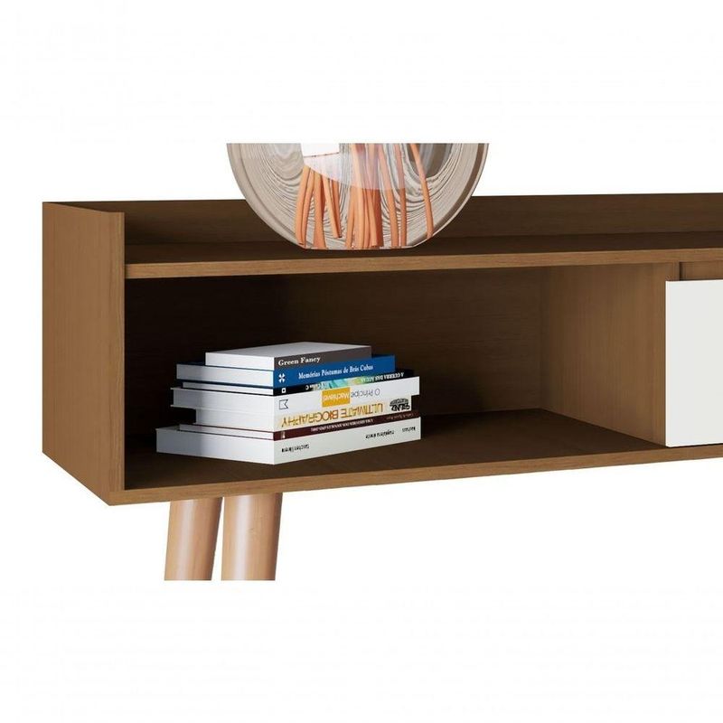 O Aparador Retrô Delta - MoveisAqui foi pensado para complementar sua sala de estar ou de jantar. Sua gaveta com corrediça telescópica e seu nicho garantem a acomodação de peças decorativas e seus pés inclinados estilo retrô em madeira pinus garante o charme ao móvel. Clássico e charmoso, é a melhor opção para seu ambiente.Dimensões do Produto Montado:Altura: 90 cm;Largura: 109 cm;Profundidade: 38 cm.Observações:- Produzido em MDP;- Gaveta com corrediças telescópicas;- Pés palito, estilo retrô, em madeira pinus;- Pintura ultravioleta com acabamento amadeirado na cor malbec;- Pintura ultravioleta com acabamento brilho na cor off white.