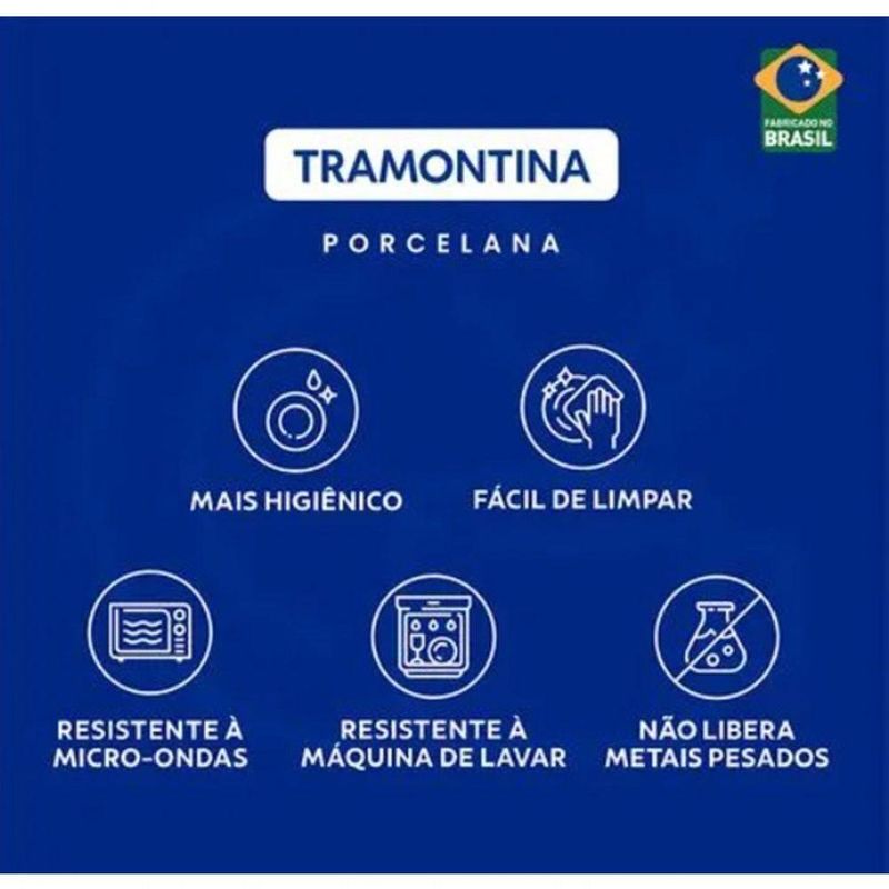 Você merece o melhor, e o Aparelho de Jantar Aba Larga Porcelana da Tramontina é a expressão máxima de elegância e qualidade. Transforme suas refeições em experiências extraordinárias com este conjunto de 20 peças, meticulosamente projetado para atender aos seus desejos mais refinados.- Design impecável: Desenhado para impressionar, o design de aba larga adiciona um toque contemporâneo à sua mesa. A simplicidade do branco destaca a beleza natural dos alimentos, elevando cada refeição a um evento especial.- Resistência e durabilidade: Fabricado em porcelana de alta qualidade, este aparelho de jantar não é apenas bonito, mas também resistente. Sua durabilidade excepcional significa que você pode desfrutar de sua elegância por anos a fio. Resistente a micro-ondas e lava-louças.- Versatilidade inigualável: Do café da manhã ao jantar formal, este conjunto versátil é perfeito para todas as ocasiões. Crie memórias inesquecíveis ao redor da mesa, seja com a família ou ao receber convidados.- Toque de luxo em cada detalhe: Cada peça é cuidadosamente trabalhada para proporcionar uma experiência tátil única. Sinta a qualidade premium em suas mãos, adicionando um toque de luxo a cada refeição.- Contém: 4 Pratos Raso 28cm, 4 Pratos Fundo 23cm, 4 Pratos Sobremesa 21cm, 4 Xícaras chá 185ml e 4 Pires chá 15cm.