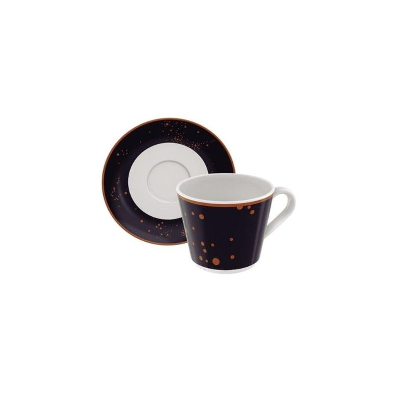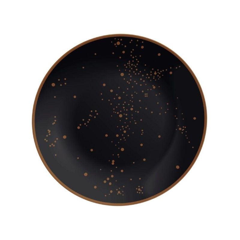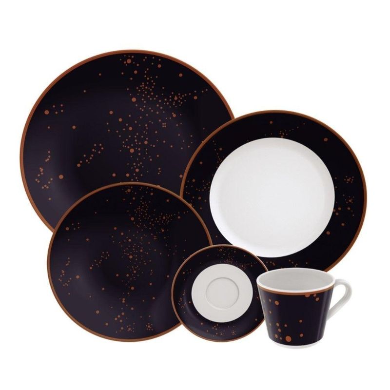 Aparelho de Jantar de Porcelana 20 Peças Valentina TramontinaO aparelho de jantar Valentina em porcelana decorada, com 20 peças, é a escolha perfeita para deixar suas refeições ainda mais especiais. Toda a coleção Valentina tem como inspiração a primeira mulher astronauta, prestando um tributo à coragem e ao espírito pioneiro de uma mulher que alcançou as estrelas e até hoje traz grandes inspirações. Fabricado com porcelana tradicional e exclusiva Tramontina, o aparelho de jantar serve até 4 pessoas e pode ir à lava-louças e ao micro-ondas. Esse aparelho de jantar é a escolha perfeita para quem está à procura de sofisticação à mesa.Aparelho de Jantar de Porcelana 20 Peças Valentina Tramontina - Incluso4 Pratos Rasos - 28 cm4 Pratos Fundos - 22 cm4 Pratos Sobremesa - 21 cm4 Pires de Chá - 11 cm4 Xícaras de Chá - 210 mlAparelho de Jantar de Porcelana 20 Peças Valentina Tramontina - InformaçõesUso: Resistente a micro-ondas, resistente a lava-louçasMaterial: PorcelanaFormato: RedondoDecoração: AstronautaCor: Preto e marrom