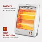 Pode ser colocado em qualquer cômodo da casa, sendo ideal para espaços de até 12m² ou 25m³. Possui alça para transporte, que facilita levar seu aquecedor para qualquer lugar.