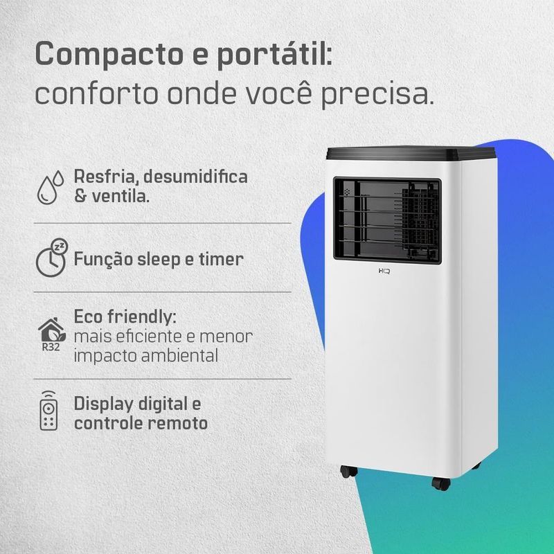 O ar-condicionado portátil HQ é a solução perfeita para quem busca conforto e praticidade. Disponível nos modelos de 8.500 BTUs e 10.500 BTUs, é ideal para ambientes de até 15m². Com design moderno, oferece modos de resfriamento, ventilação e desumidificação, além de função Sleep e temporizador de 24 horas. Compacto, fácil de instalar e transportar, é a escolha ideal para residências, escritórios ou qualquer ambiente que precise de climatização eficiente.Características Principais:
