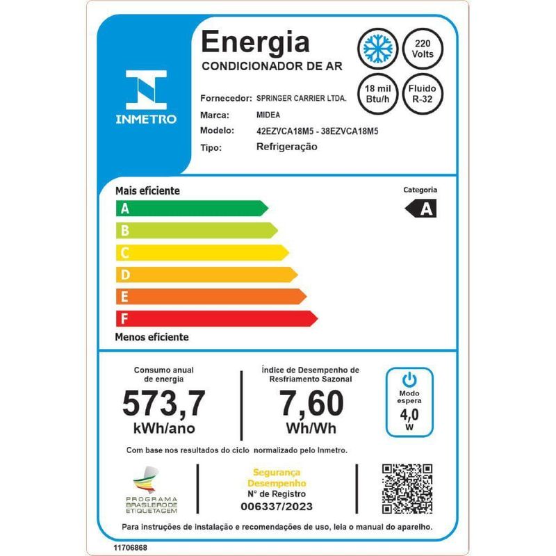 Ar Condicionado Split 18.000 BTUs Inverter AI Ecomaster Frio Midea 42EZVCA18M5.38EZVCA18M5 220V