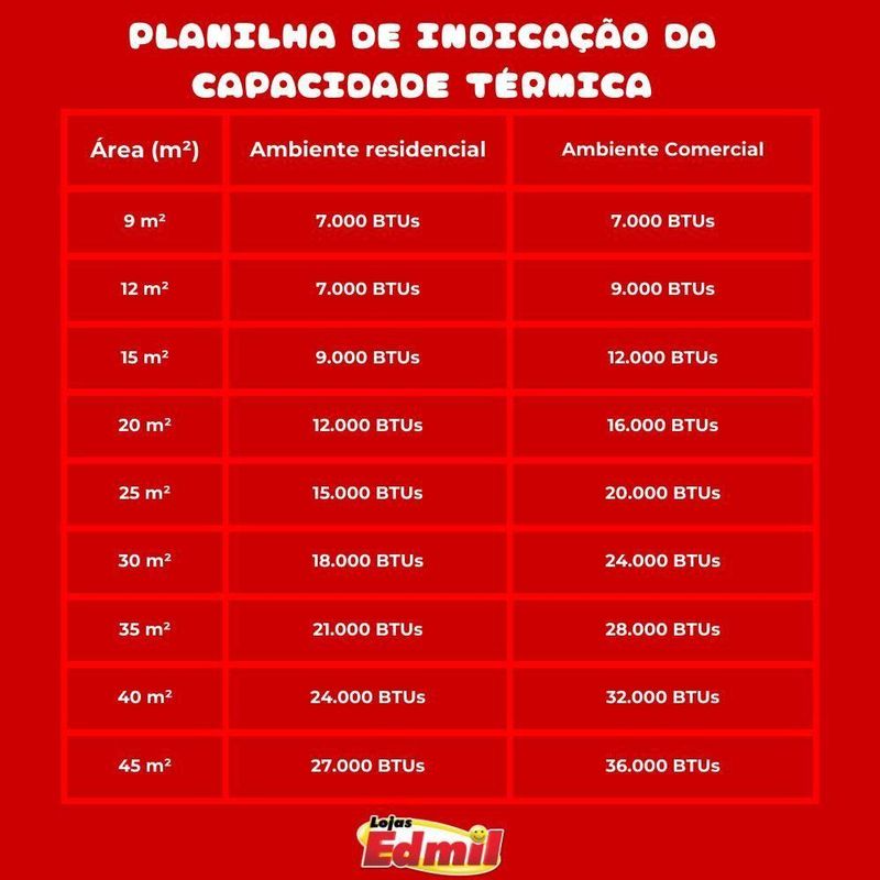 Capacidade de refrigeração: 9000