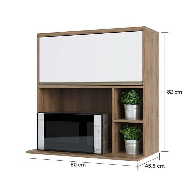 Armário Aéreo 80 Cm 1 Porta Basculante Nicho Micro Conjugado E Nicho Lateral Mel Luciane Móveis Vanilla Com Branco
