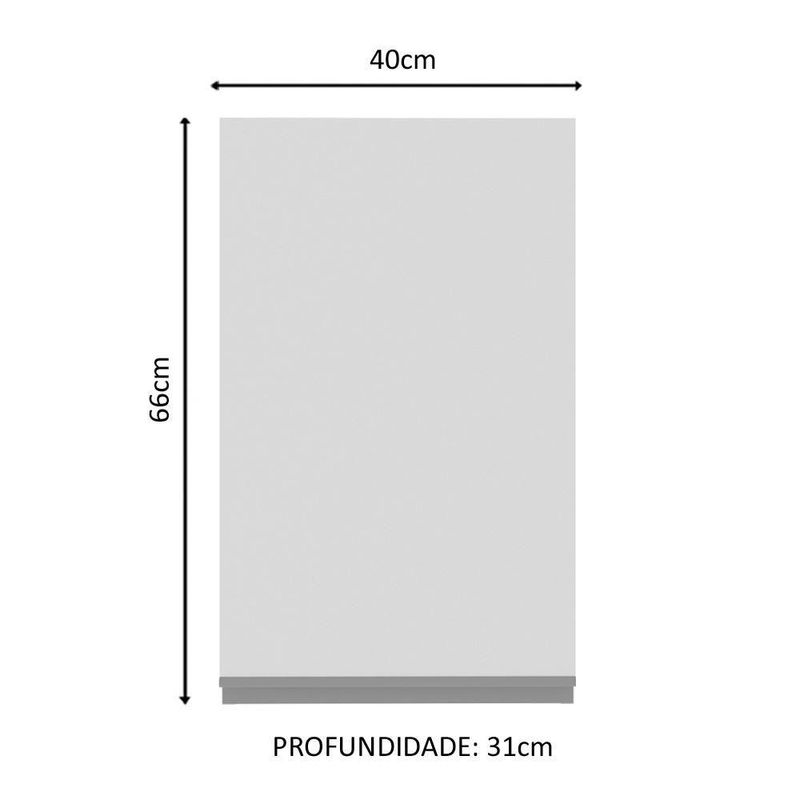 Além disso, o espaço interno contempla uma prateleira e é perfeito para a organização de utensílios, louças, mantimentos e o que mais você preferir. O acabamento interno e externo é branco, feito em Pintura Poliéster é ecológica de alta resistência, que protege o móvel contra os efeitos do álcool, da água e do calor. Este armário pode ser combinado com outros módulos e com todas as cozinhas da linha Acordes Glamy. Especificações Técnicas