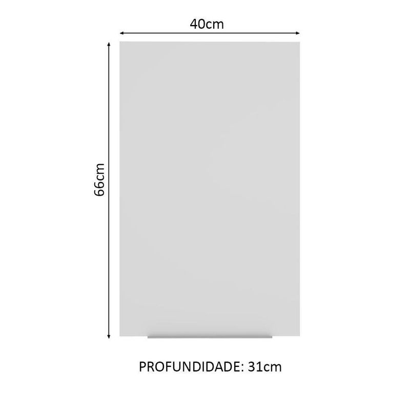 Tonalidade: Branco O Armário Aéreo de 40 cm da linha Stella da Madesa conta com uma porta convencional e espaço interno com uma prateleira, ideal para guardar louças, mantimentos e muito mais.