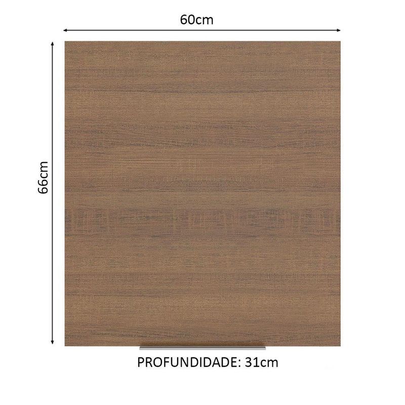 - Um (1) Armário Aéreo de 66 cm de altura x 60 cm de largura x 31 cm de profundidade com uma (1) porta e dois (2) nichos internos