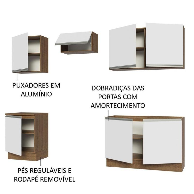 Armário De Cozinha Completa 240cm Rustic/branco Glamy Madesa 09 Rustic/branco