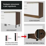 Este móvel vem equipado com puxadores de alumínio e fechamento suave das portas graças aos amortecedores. Para completar, possui pés reguláveis em PVC e rodapé removível em MDP.
