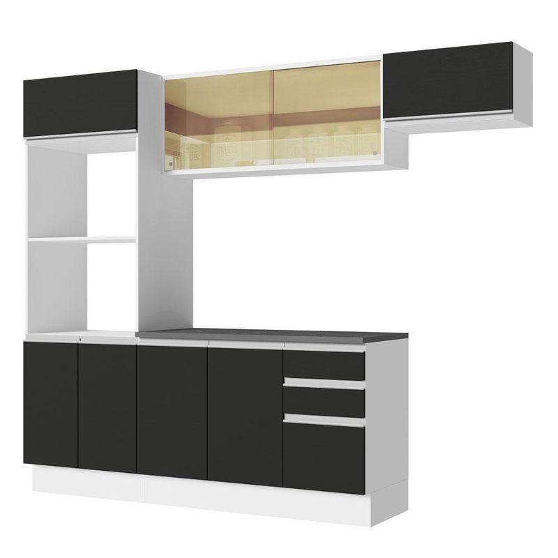 Armário De Cozinha Completa 100% Mdf 250cm Branco/preto Acordes Madesa 04 Branco/preto