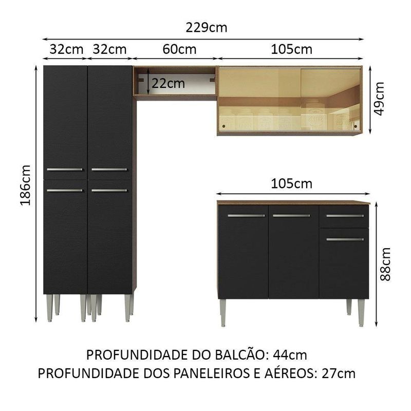 Armário De Cozinha Completa 229cm Rustic/preto Emilly Madesa 06 Rustic/preto