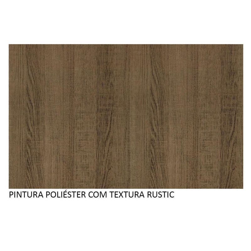 Para completar, o acabamento da cozinha é no padrão amadeirado Rustic, feito em Pintura Poliéster ecológica, que consiste na aplicação de 7 camadas de proteção resistentes a álcool, água e calor.