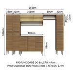 - 44 cm de profundidade no balcão e 27 cm de profundidade nos aéreos e nos paneleiros