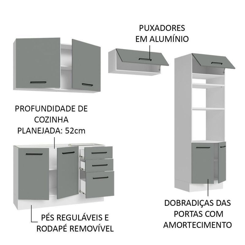 Armário De Cozinha Completa 270cm Branco/cinza Agata Madesa 08 Branco/cinza