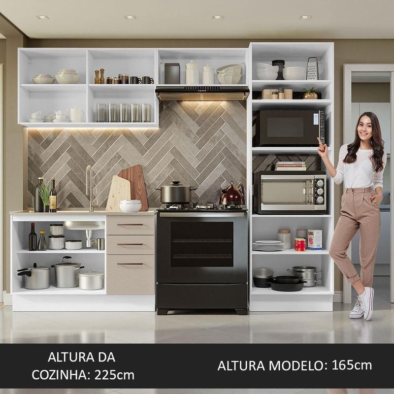 Armário De Cozinha Completa 270cm Branco/crema Agata Madesa 08 Branco/crema