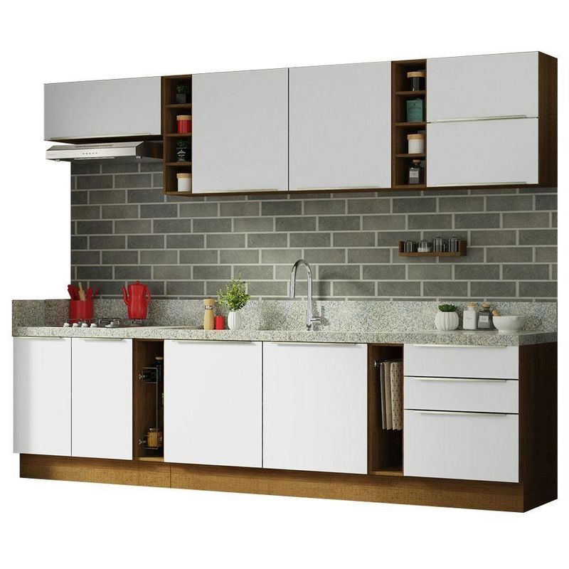 Armário De Cozinha Completa 300cm Rustic/branco Veludo Lux Da Sabrina Madesa Rustic/branco