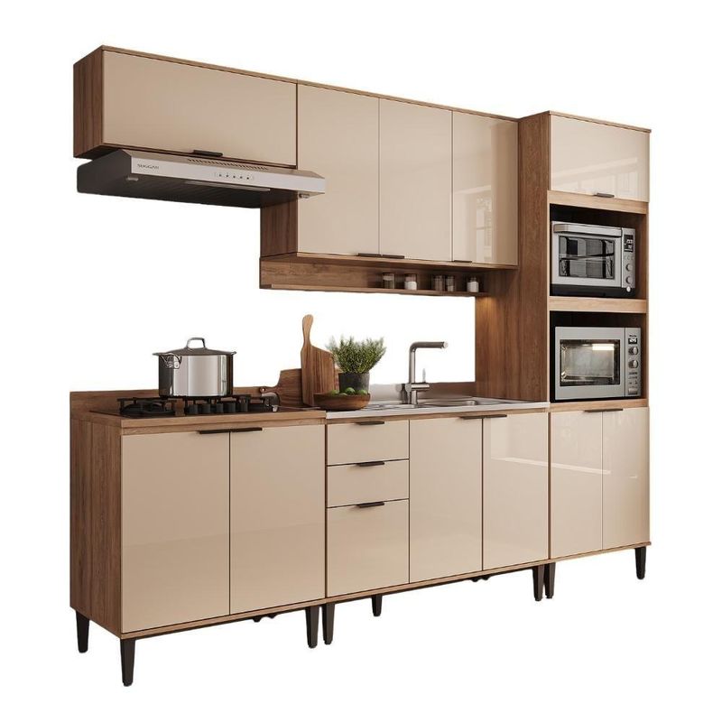 Armário De Cozinha Completa C Balcão Miami Box Carraro Off White C Freijó