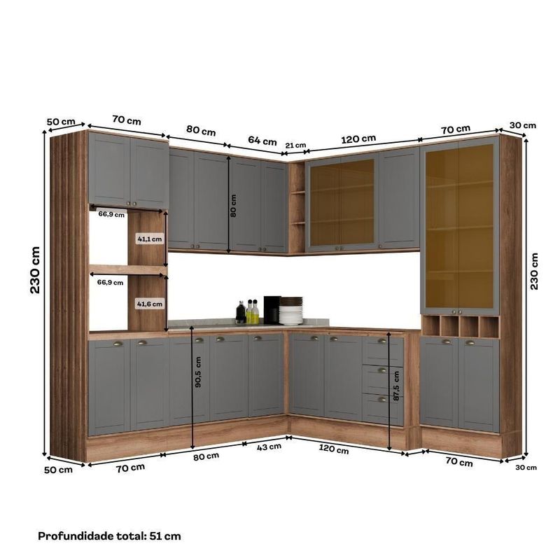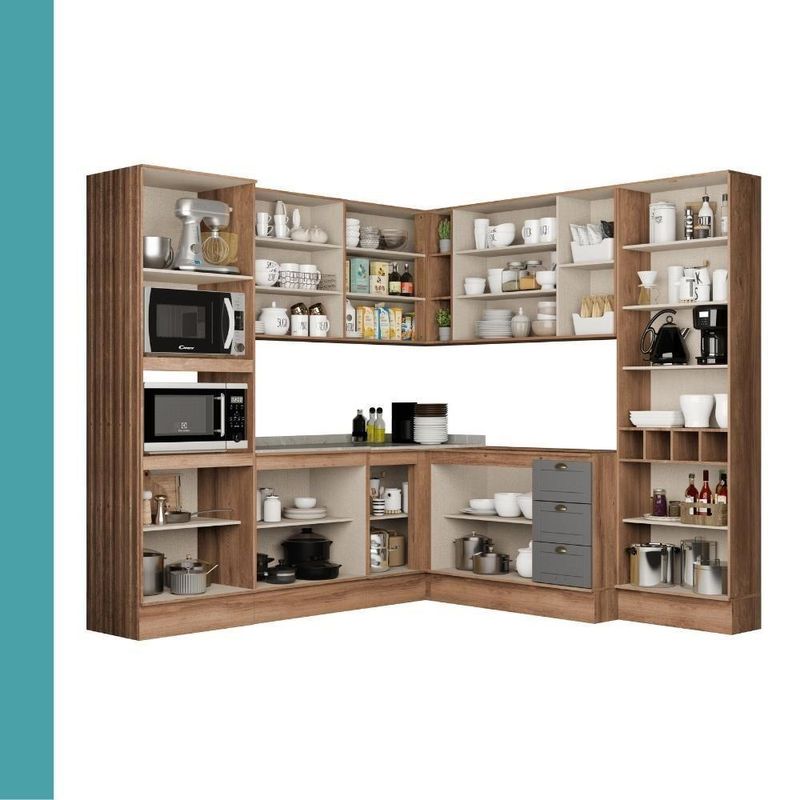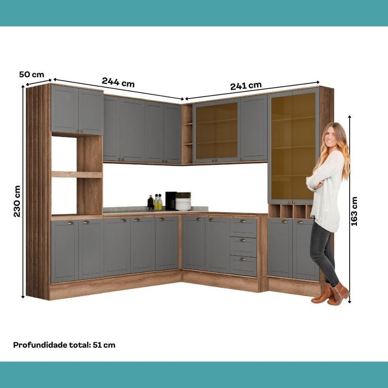 Armário De Cozinha Completa C Balcão Milla Aura Carraro Nogal Cinza Titânio