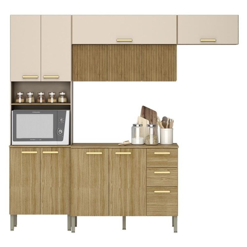 Armário De Cozinha Completa Com Balcão Com Tampo 12 Portas Urbano - Freijó/vanilla/com Ripado