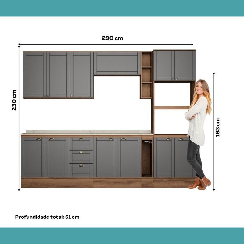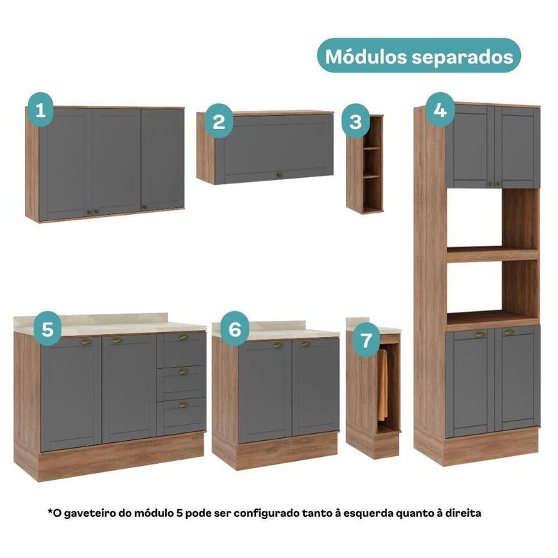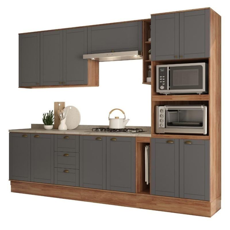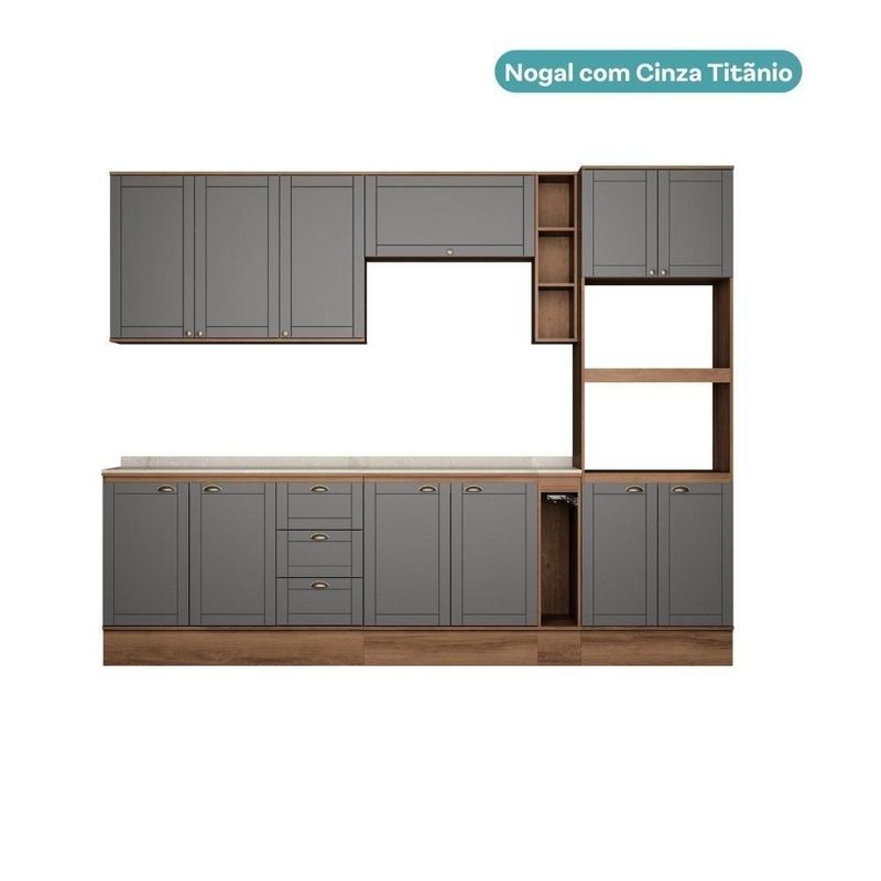 Armário De Cozinha Completa Com Balcão Milla Dreamer Carraro Nogal Cinza Titânio