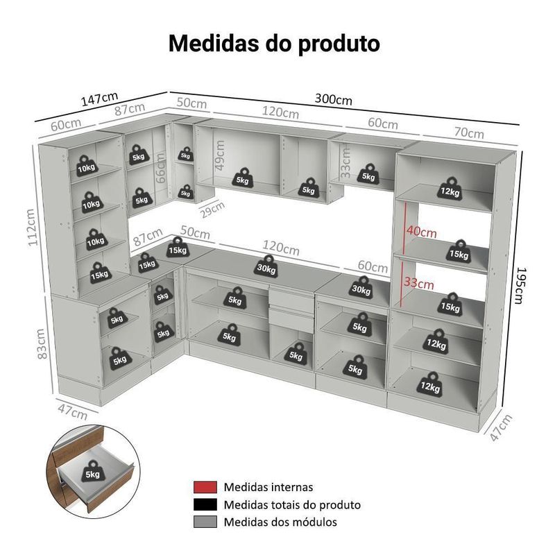 - 47 cm de profundidade dos balcões