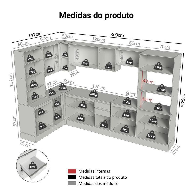 Armário De Cozinha Completa De Canto 100% Mdf 447 Cm Smart Madesa 02 Branco