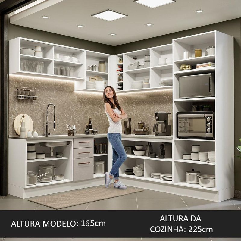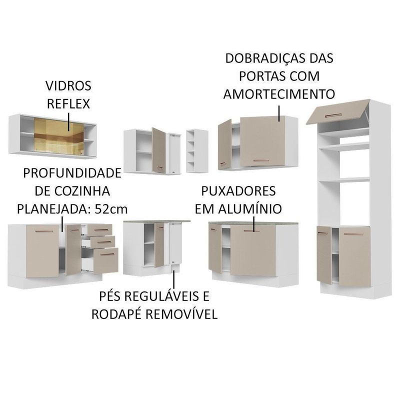 Armário De Cozinha Completa De Canto 459cm Branco/crema Agata Madesa 01 Branco/crema