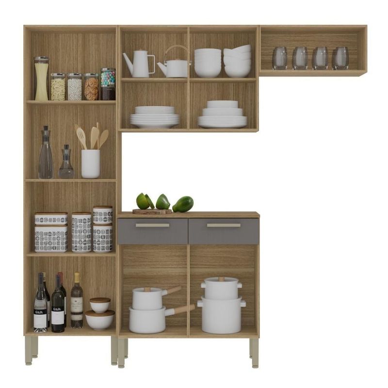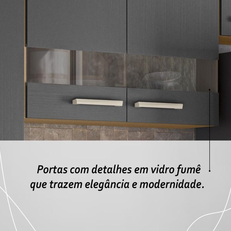 Armário De Cozinha Completa Mdf 10 Portas 2 Gavetas Atenas Plus - Freijó/gris