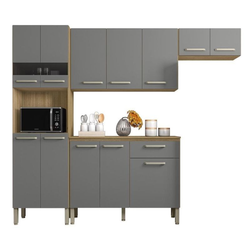 Armário De Cozinha Completa Mdf 12 Portas Com Balcão London Plus - Freijó/gris