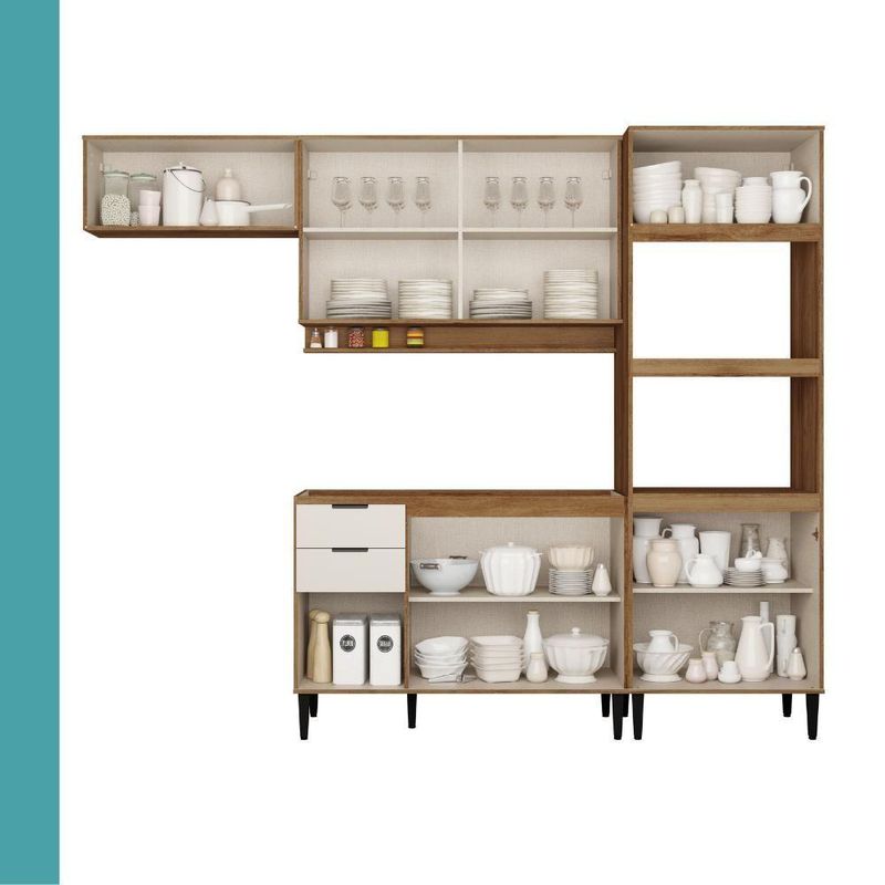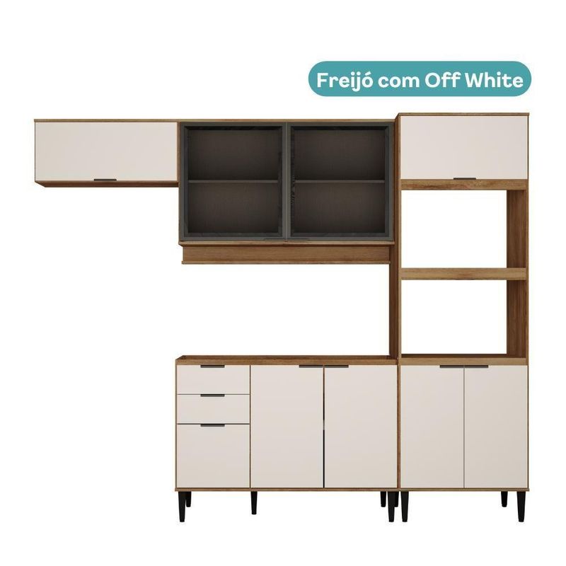 Armário De Cozinha Completa Miami Plus Carraro Freijó Com Off White