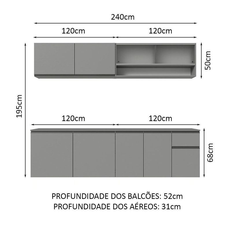 Armário De Cozinha Completa Suspenso 240cm Cinza Nice Madesa 04 Cinza Para deixar sua cozinha muito mais funcional e aconchegante, a dica é apostar neste Armário de Cozinha Completa da linha Nice da Madesa!