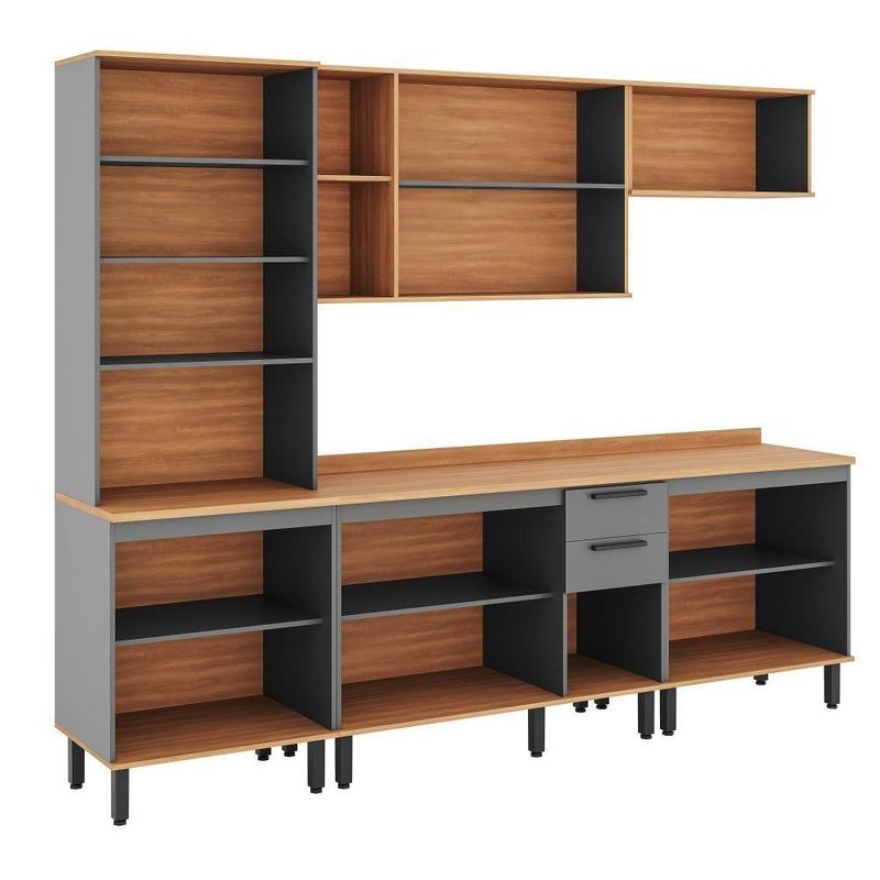 Como conservar o produto:- Na limpeza, utilizar pano macio levemente umedecido em água e sabão neutro. Após, secar para evitar mofo no produto.- Nunca utilizar álcool ou produtos abrasivos e, principalmente, esponjas de aço ou qualquer material que arranhe a superfície.- Evitar o armazenamento de substância ácidas (sal, vinagre, limão, cebola, etc) em contato direto com o móvel. Cor: Freijó com Cinza | Inclui manual de montagem: Sim | Materiais do corpo: MDP | Requer Montagem: Sim | Tipo de móveis de cozinha: Cozinha Completa
