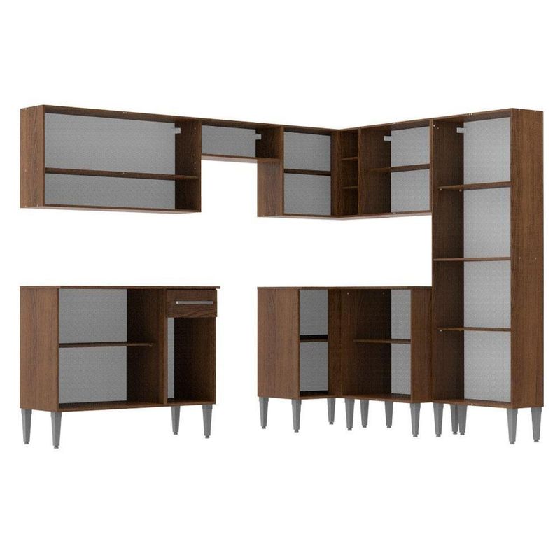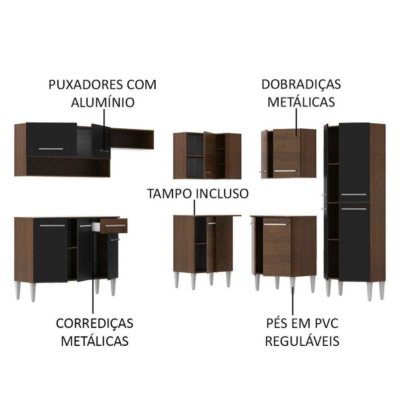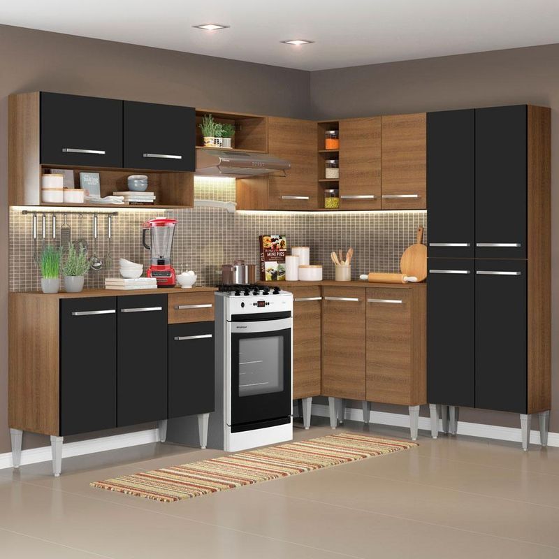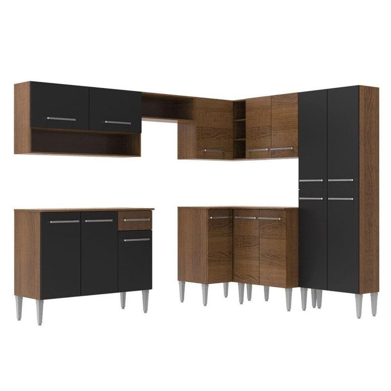Armário De Cozinha Completa De Canto Madesa Emilly Rock Com Balcão E Adega - Rustic/preto