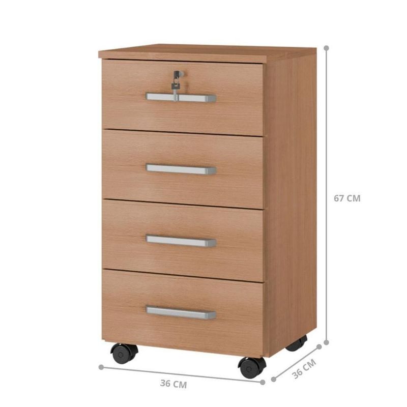 Gaveteiro Gávea, produto Versátil Compacto ideal para pequenos espaços, Pintura Textura, 4 Gavetas sendo 01 com Chave e com Rodízios para facilitar manuseio.Informações do produto:Altura: 67 cmLargura: 36 cmProfundidade: 36 cmInformações adicionais:Gavetas: Sim (4)Rodízios: Sim (4)Cor: FreijóMaterial: MDP 12/15mmEmbalagem feita com papelão revestido por plástico, com isomanta e com BUP's (proteção de cantos) para garantir a qualidade do produto:3 meses contra de fabricação.Itens Inclusos:-01 Gaveteiro-Kit completo para montagem, manual detalhado de instruções.Informações complementares:- Fotos meramente ilustrativas do produto no ambiente.- Os objetos que ambientam as fotos não acompanham o produto;- Verificar descrição e tamanho do produto antes da compra.- Avaliar a mercadoria no ato do e recusar em caso de divergência ou .- Mantenha as informações de e de atualizados para entrarmos em caso necessário.- Limpar com flanela ou pano macio seco, não utilizar produtos abrasivos, desengordurantes, álcool ou solvente. Não expor o produto diretamente à luz solar e à umidade.* Sugerimos a contratação de um montador para a montagem do produto. Não nos responsabilizamos por causadas no ato da montagem.* Não nos responsabilizamos pela montagem e desmontagem do produto no ato da e , assim como os custos gerados nestas situações.* A transportadora entregará o produto no andar térreo do de .* Não nos responsabilizamos por subir escadas, corredores e elevadores ou por guincho em apartamentos.