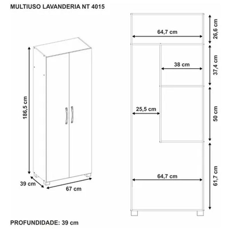 Armário Multiuso Nt4015 Lavanderia 2 Portas Notável Branco Brilho