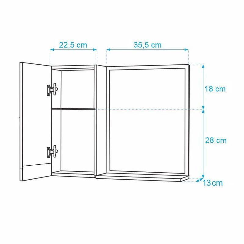 Armário para Banheiro com Espelho na cor Azul e Branco é ideal para organizar vários itens. Possui prateleira interna em vidro, armário com porta e amplo espelho. É a escolha perfeita para seu banheiro.