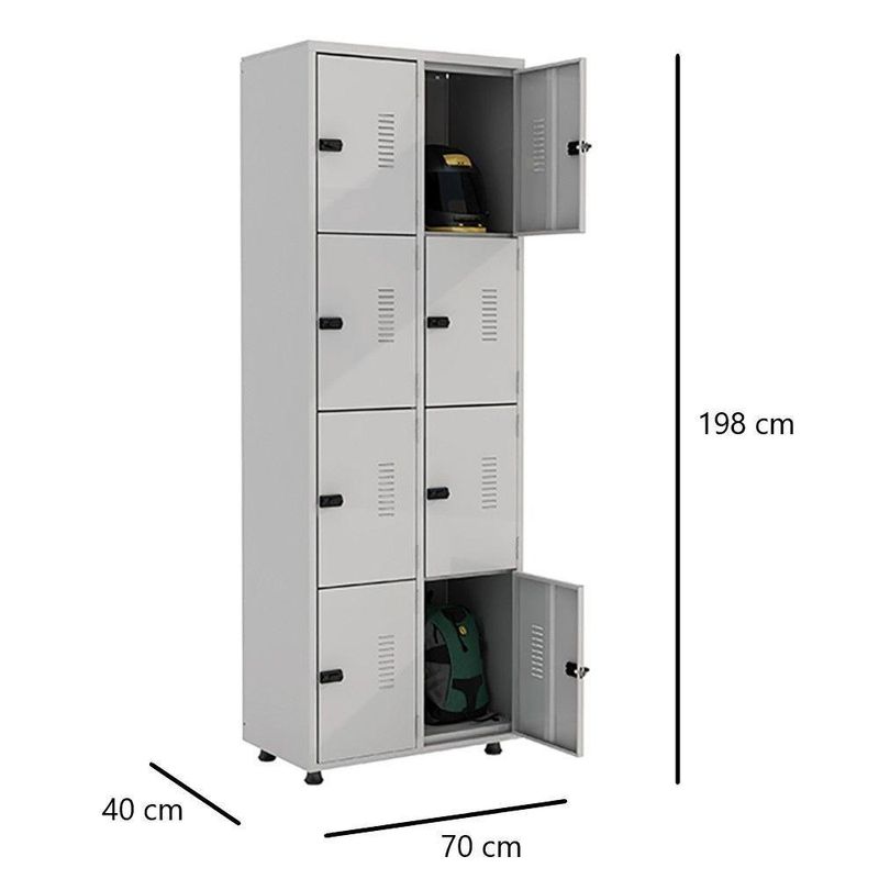 Ele é composto por 04 portas que cabem todos os modelos de capacetes e outros pertences. Super resistente, suporta até 20Kg bem distribuídos por compartimento. Possui pés niveladores para um perfeito acabamento e evitando assim riscos no piso. Porta com trinco para cadeado que permanece fechada mesmo que esteja sem o cadeado no momento - diferente do pitão tradicional que precisa ser amarrado para evitar que fique batendo - perfeito acabamento e praticidadeCaracterísticas do Produto