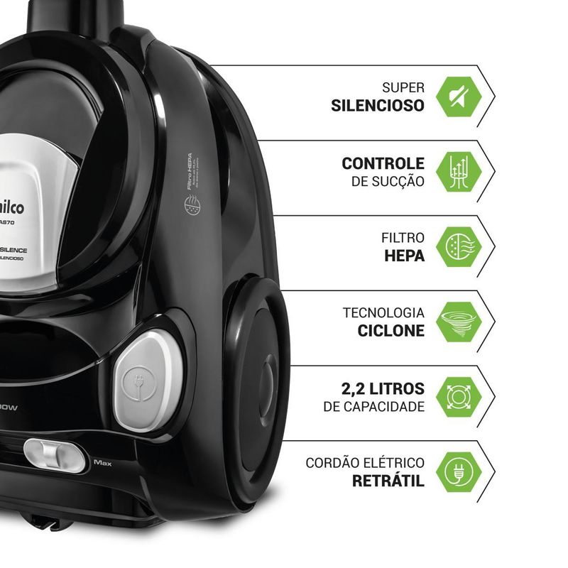 Mais agilidade na hora da limpeza com o Aspirador de Pó Philco 1800W 2,2L Super Silencioso PAS70!