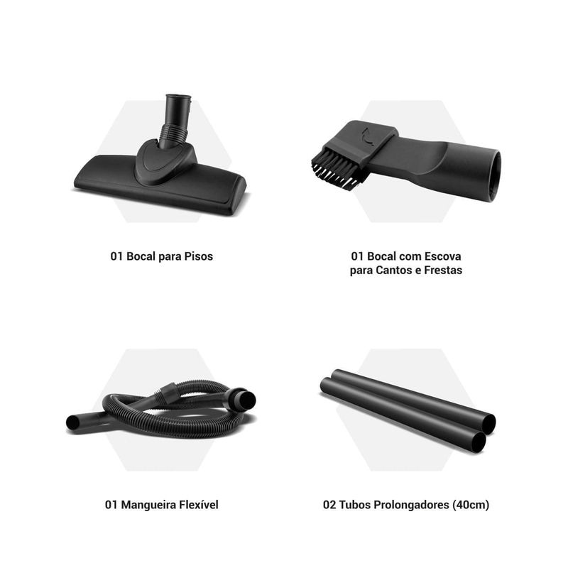 São 1800W de alta potência, que garante mais eficiência na hora de aspirar diferentes espaços.