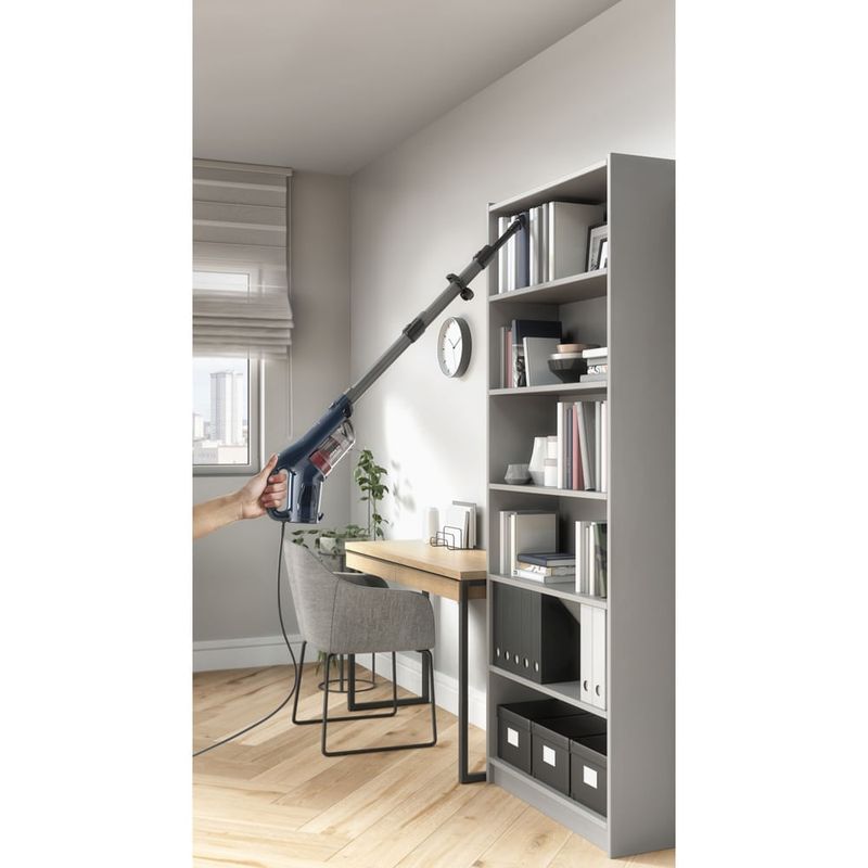 Graças ao cabo elétrico de 5 metros, o raio de ação do aspirador de pó é de 6 metros, diminuindo a necessidade constante de trocar o aparelho de tomada além de, poder ser utilizado como aspirador vertical e aspirador de mão, com a eficiência e alta performance que a Electrolux oferece em seus eletroportáteis.