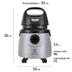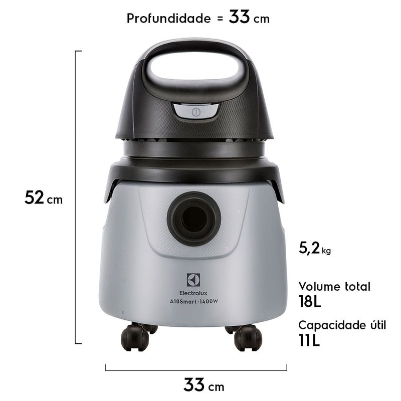 Com ele, você conta com a capacidade útil de 11L do reservatório e volume total do recipiente de 18L, limpando todas as partículas de sujeira de uma só vez.O Aspirador Smart da Electrolux aspira tanto sólidos quanto líquidos (não inflamáveis).