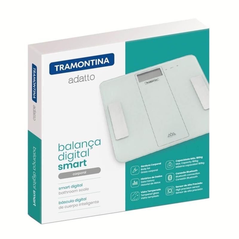 Se você busca um item de alta tecnologia e que vai garantir um controle perfeito do seu peso, a balança digital smart Tramontina Adatto corporal é indispensável. Produzida com plataforma de vidro temperado, ela efetua a pesagem de carga de até 180 quilos, controla seu peso e mantém seu histórico de dados, tudo isso, por meio de aplicativo e conexão bluetooth. Seu sensor possui alta precisão e funciona com duas pilhas AAA. Mais um item Tramontina, pensado para facilitar sua vida e deixá-la muito mais prática!Recomendações de Uso:Para garantir uma melhor precisão do resultado, coloque a balança em um piso duro e plano. Evite carpetes ou superfícies macias, pois podem afetar o resultado da leitura.