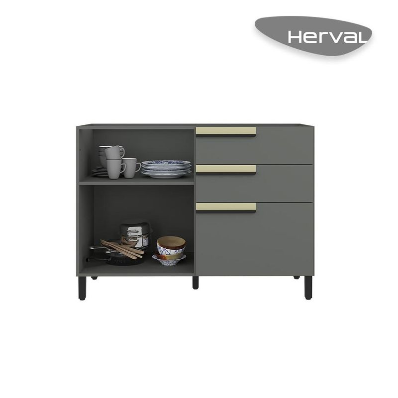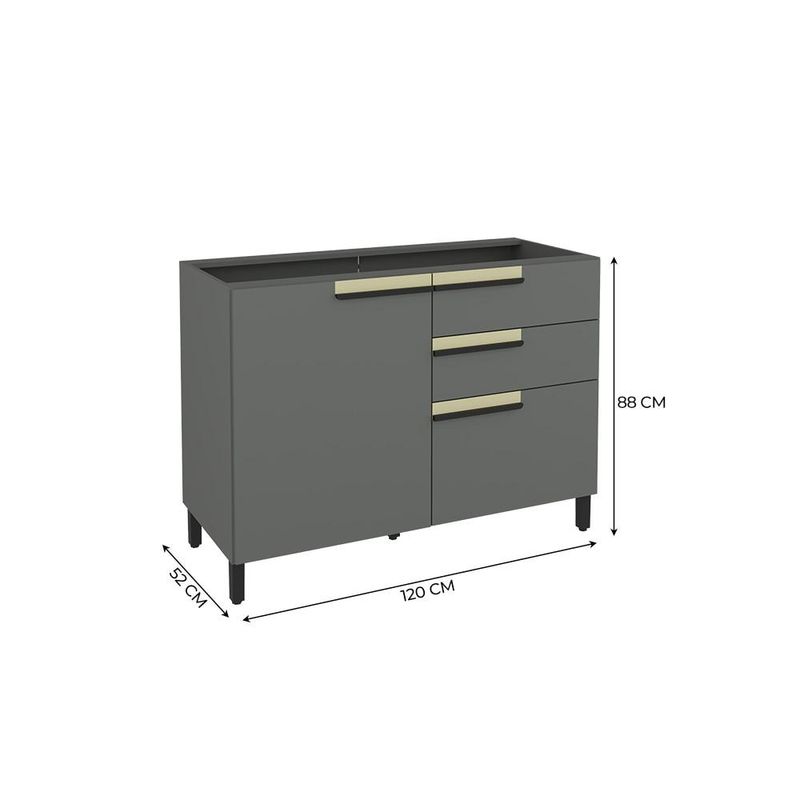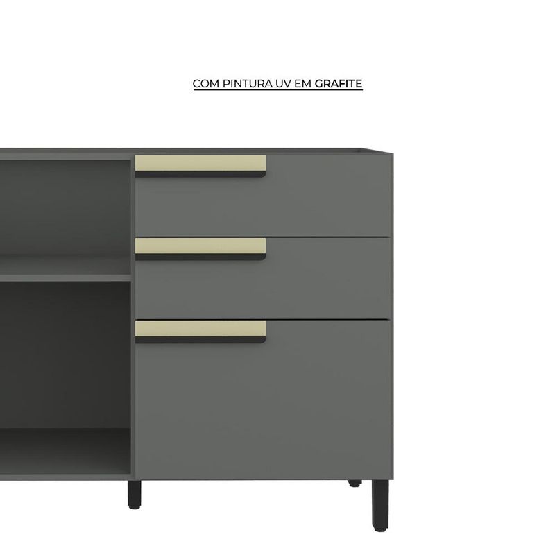 BALCÃO 1 PORTA E 2 GAVETAS DE COZINHA HERVAL MANHATTAN, MDP, GRAFITE