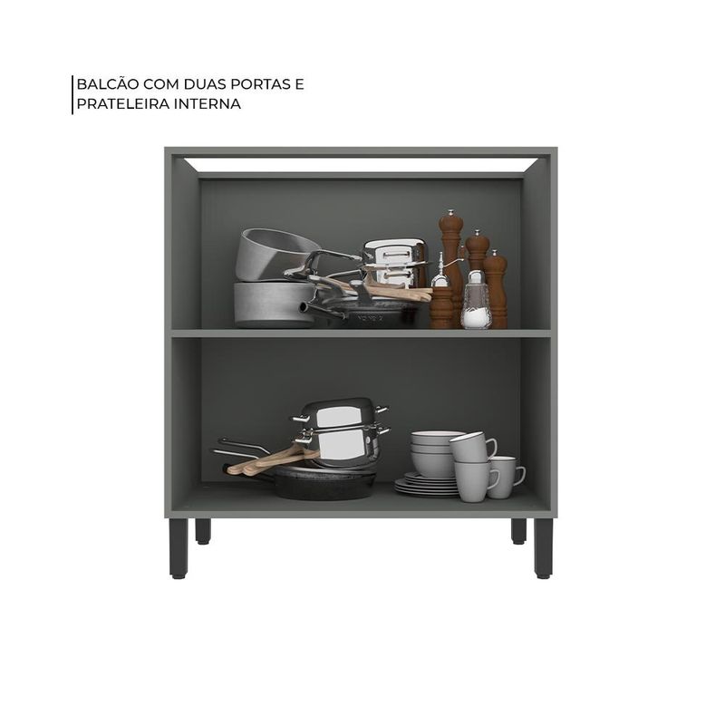 BALCÃO 2 PORTAS DE COZINHA HERVAL MANHATTAN, MDP, GRAFITE