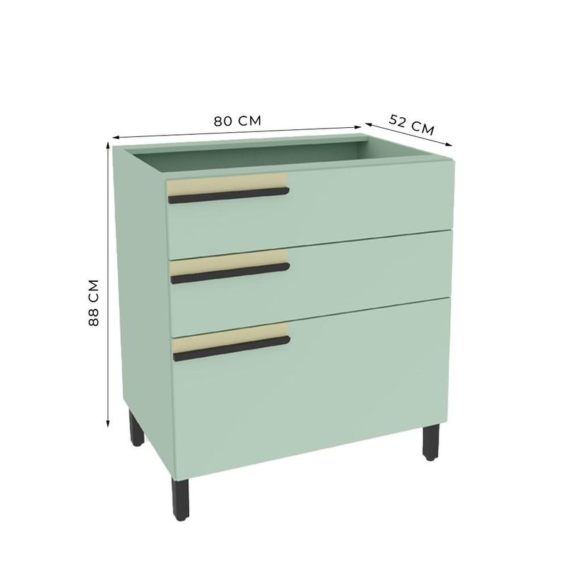 BALCÃO 3 GAVETAS DE COZINHA HERVAL MANHATTAN, MDP, VERDE BALISua cozinha merece a mais bela decorações, e o Balcão 3 Gavetas de Cozinha Herval Manhattan é a escolha IDEAL para completar seu ambiente. Com 3 gavetas esse balcão agrega amplo espaço para que você possa guardar utensílios e mantimentos com facilidade.ESTRUTURAA estrutura do Balcão 3 Gavetas de Cozinha Herval Manhattan é composta por MDP, material que entrega resistência e qualidade, sua fixação conta com parafusos, cavilhas e minifix, para agrega ainda mais sustentação ao balcão. As gavetas conta com Corrediças telescópicas de 300 mm, facilitando a abertura e fechamento das mesmas.REVESTIMENTOO Balcão 3 Gavetas de Cozinha Herval Manhattan conta com acabamento em cor Verde Bali.CARACTERÍSTICAS