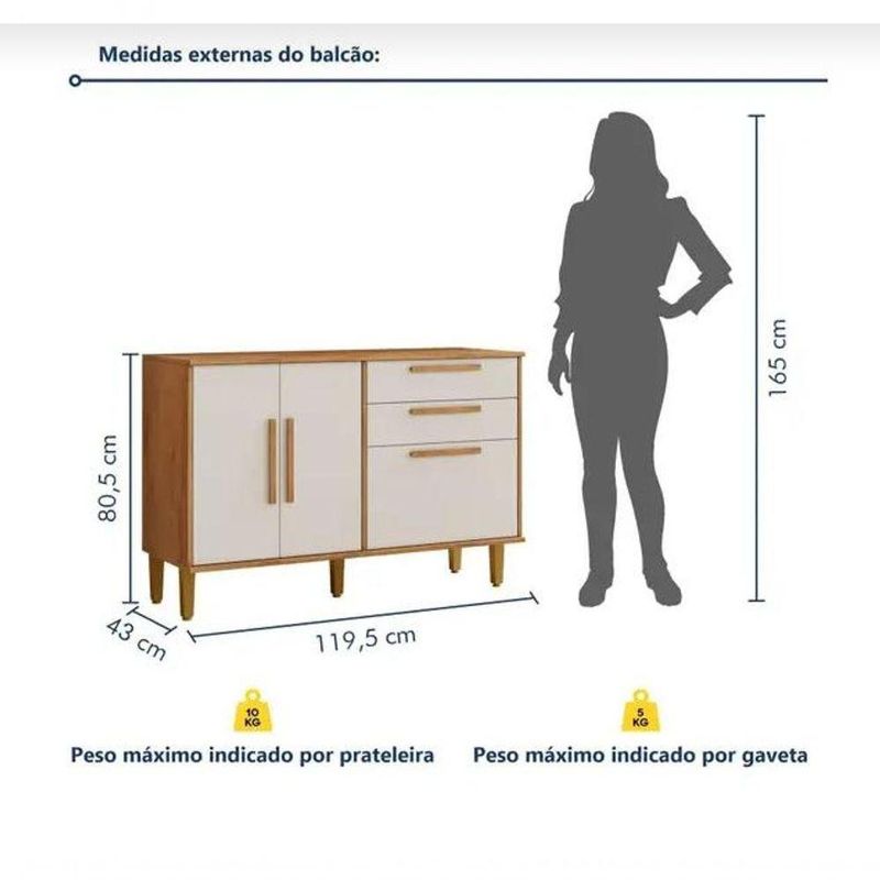 Balcão 3 Portas 2 Gavetas Lorena Kaiki Móveis - Nature/off
