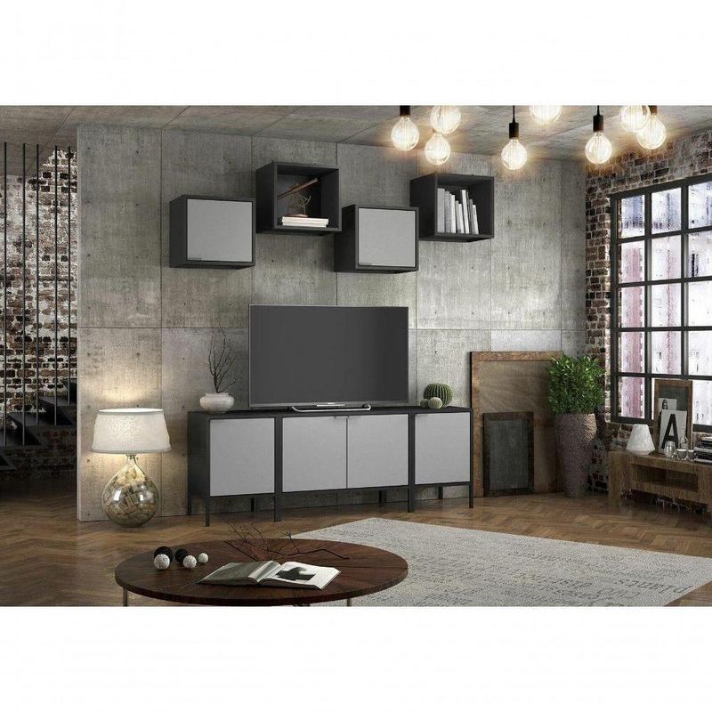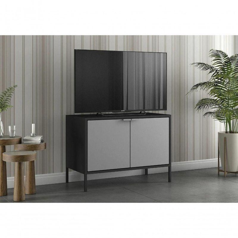 Balcão Baixo Multiúso Itatiaia Smart - 2 Portas - Preto Matte C/ Cinza
