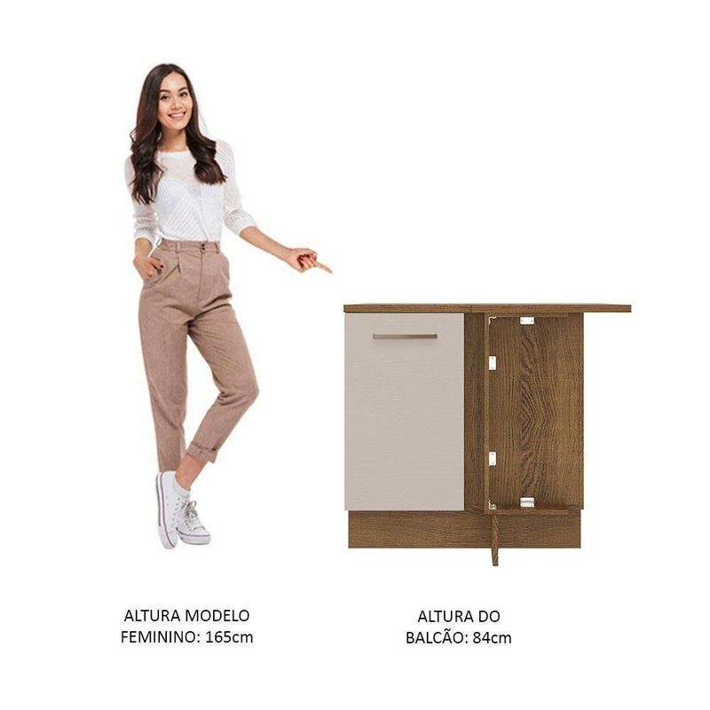 Balcão De Canto 1 Porta Rustic/crema Agata Madesa Rustic/crema O Balcão de Canto Reto da linha Agata da Madesa é ideal para aumentar o espaço útil da sua cozinha.