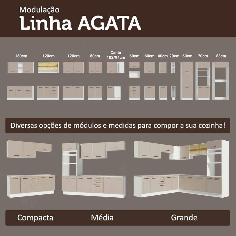 Garantia: Este produto conta com 1 ano de garantia total, sendo 3 meses de garantia legal e 9 meses de garantia contratual. A garantia cobre exclusivamente defeitos de fabricação e vícios ocultos. Não estão cobertos: problemas decorrentes de montagem incorreta, uso inadequado, exposição à umidade, calor ou luz solar direta, modificações no produto ou desgaste natural. Cor: Bege | Garantia: 12 meses | Dimensões - Altura: 81 cm | Dimensões - Largura: 50 cm | Dimensões - Profundidade: 52 cm | Produto: Cozinha | Marca: Madesa | Peso aproximado: 18 kg | Material: MDP | Estado de Origem: RS | Conteúdo da embalagem: 1 Balcão Gabinete | Material para Filtro: MDP | Instruções/Cuidados: Utilize um pano limpo, levemente umedecido e seque em seguida a superfície. Não usar produtos químicos ou abrasivos para a limpeza. Recomendamos polir seu móvel com lustra-móveis duas a três vezes por ano. | Produto precisa de Montagem?: Sim | Peso Produto Com Embalagem (Kg): 17,90 | Altura do Produto com Embalagem (cm): 11,70 | Largura Produto Com Embalagem (cm): 50,40 | Comprimento Produto Com Embalagem (cm): 74,40 | Descrição do Tamanho: 81 cm x 50 cm x 52 cm | Nome do Simples no Fornecedor: Balcão de Cozinha 50cm 1 Porta (Sem Tampo) Branco/Crema Agata Madesa | Fabricante: Madesa | RBN: Casa/Móveis/Móveis de Cozinha | Materiais do corpo: MDP | Quantidade de caixas de embalagem: 2 | Bullet Point 1: Dimensões: 81 cm altura x 50 cm largura x 52 cm profundidade | Bullet Point 2: Possui dobradiças metálicas com amortecimento, garantindo um fechamento suave e silencioso. | Bullet Point 3: Puxador em alça garante praticidade e valoriza ainda mais. | Bullet Point 4: Possui acabamento de alta resistência, conservando a beleza do móvel por muito mais tempo. | É Frágil: Não | Quantidade de Itens: 1 | Certificação de teste externa: Sim | Precisa de baterias ou pilhas: Não | Número da peça (part_number): G245075LAGST | Peso do item (item_weight): value=17.9;unit=kilograms | Dimensões do item P x L x A (item_depth_width_height): depth#value=52;depth#unit=centimeters;height#value=81;height#unit=centimeters;width#value=50;width#unit=centimeters | Exige montagem (is_assembly_required): Sim | Requer montagem (REQUIRES_ASSEMBLY): Sim | Inclui manual de montagem (INCLUDES_ASSEMBLY_MANUAL): Sim | Número do modelo (model_number): G245075LAGST | is_assembly_required: Sim | Tipo de móveis de cozinha: Balcão | Linha: Agata | Componetes Incluidos: Portas | Cor: Branco/Crema